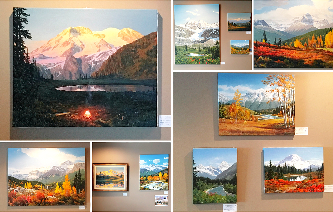 Roger Kamp’s classic mountain paintings are on display in Brambles until the end of the month. Most are available for sale!
