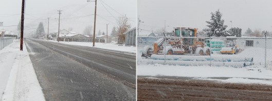 Construction crews finished paving Coldwater Ave. just in the nick of time! Looks like sidewalks might have to wait until next Spring. Meanwhile their equipment seems to be settling in for the winter.