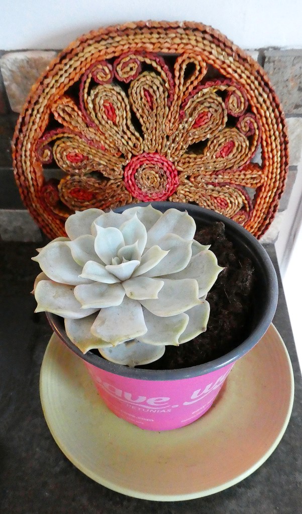 Countertop succulent, in happier times. Unfortunately, it didn’t survive the winter — possibly from over-watering.